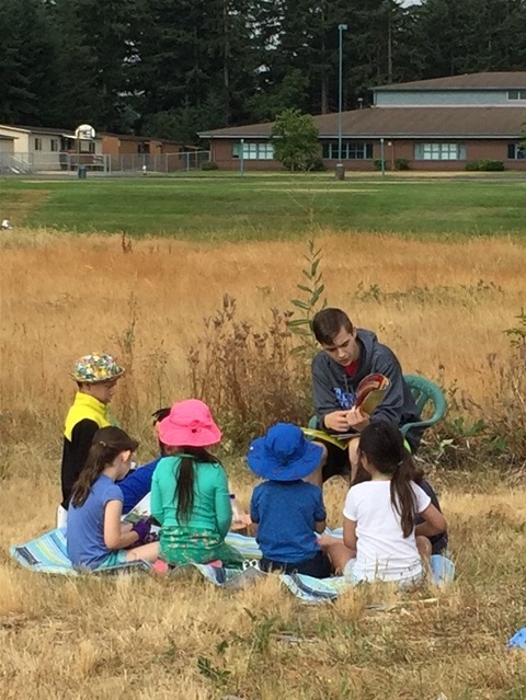 Between our garden and Evergreen Primary School lies a field which becomes a seasonal wetland during our rainy season. While the area usually dries out during the summer, A consultation from from Melissa Breckenridge of the Pierce County Water Conservation concluded that enhancing the area with native plants and continuing to remove invasive species could have a beneficial effect on our garden environment by inviting more insects and other species to the site.